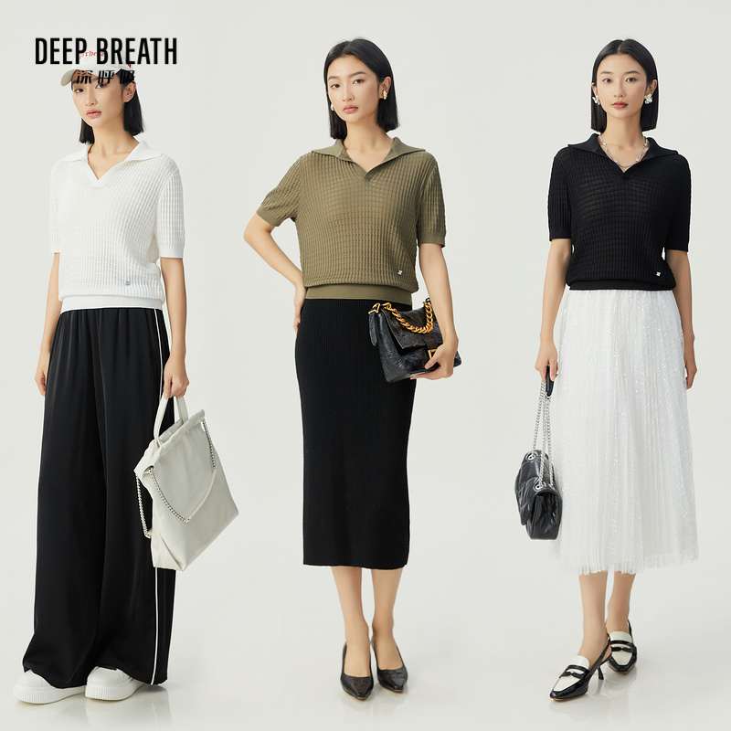 DEEP BREATH深呼吸女装 简约V型翻领短袖针织衫纯色上衣A301523