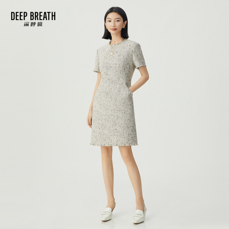 DEEP BREATH深呼吸女装 显瘦圆领短袖收腰小香风连衣裙A500368
