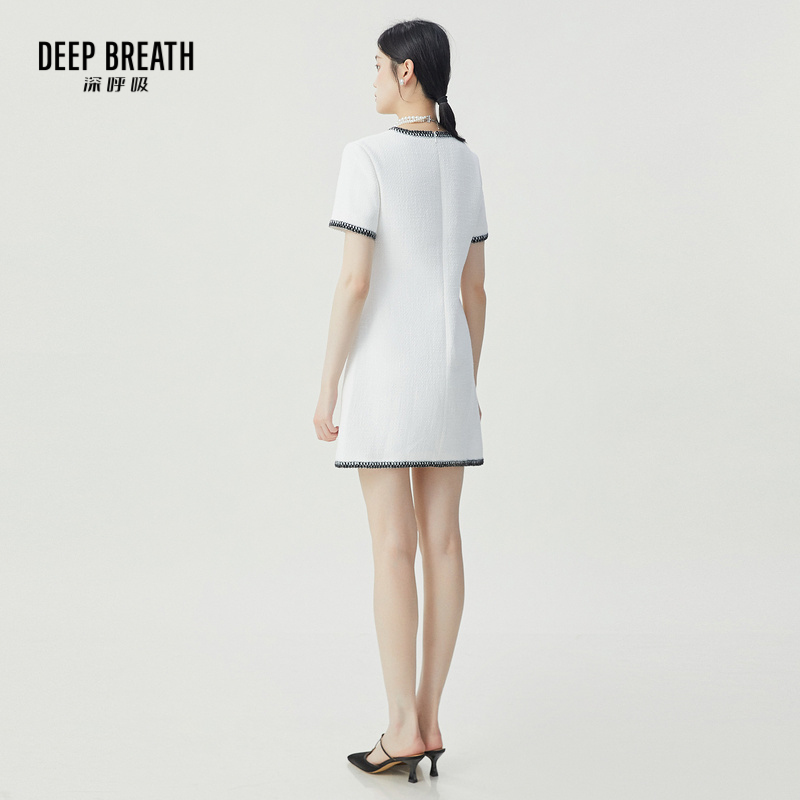 DEEP BREATH深呼吸女装 圆领拼色小香风收腰短袖连衣裙A500325