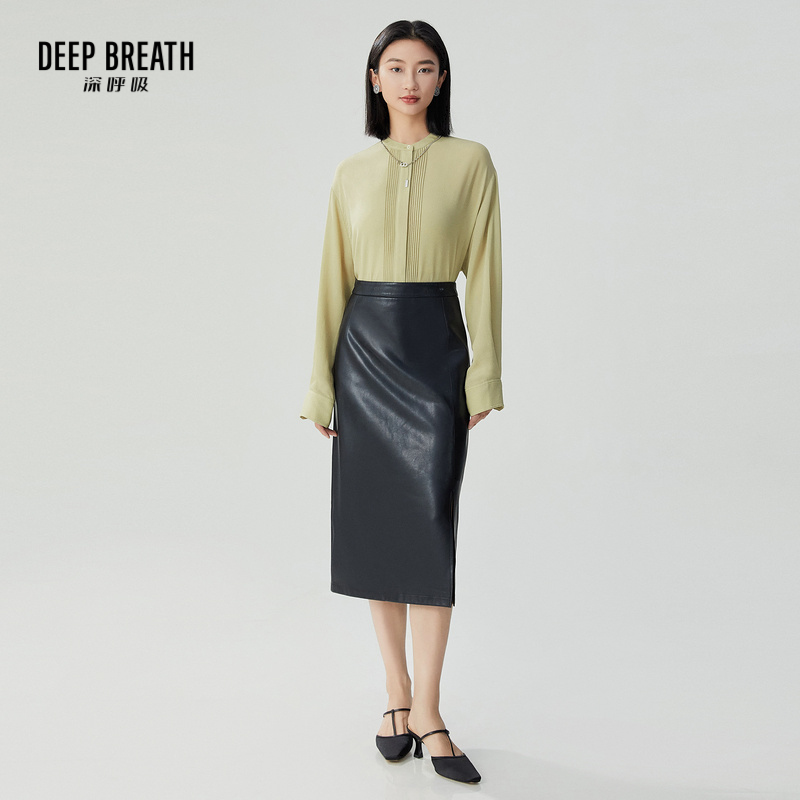 DEEP BREATH深呼吸女装 重磅6A级23姆米真丝鬼绉桑蚕丝立领衬衫A301568