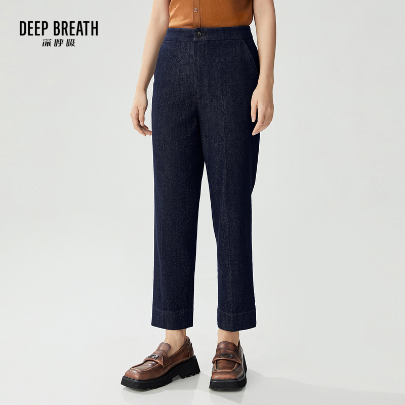 DEEP BREATH深呼吸女装 简约中腰九分通勤烟管裤牛仔裤A100361