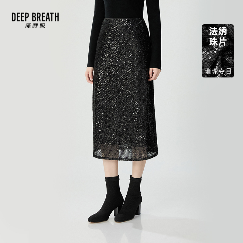 DEEP BREATH深呼吸女装 简约重工亮片千金风半身长裙A200302