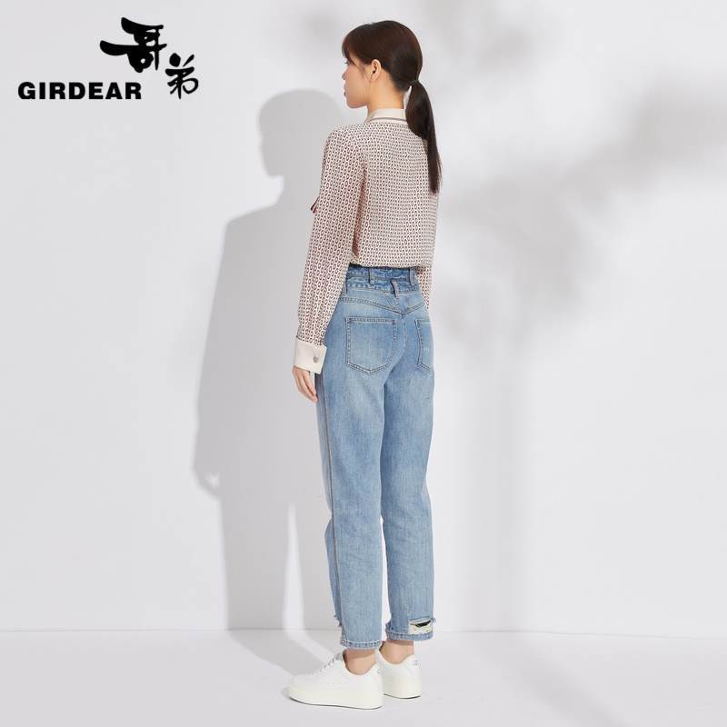 哥弟 丝质尖领长袖飘带衬衫1300702