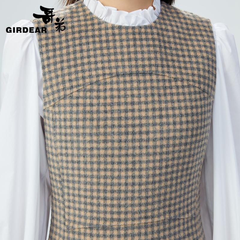 哥弟 无袖收腰双面穿毛呢洋装1500371