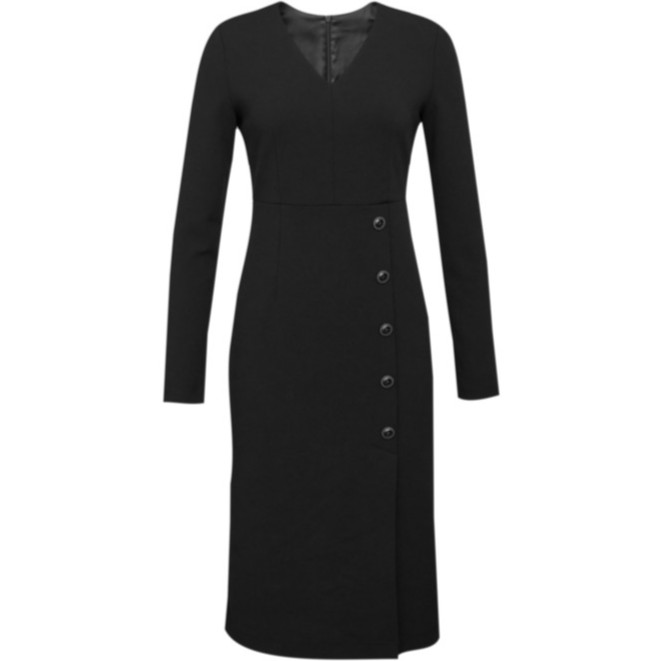 哥弟 高级感收腰V领单排扣开叉女神裙1500428