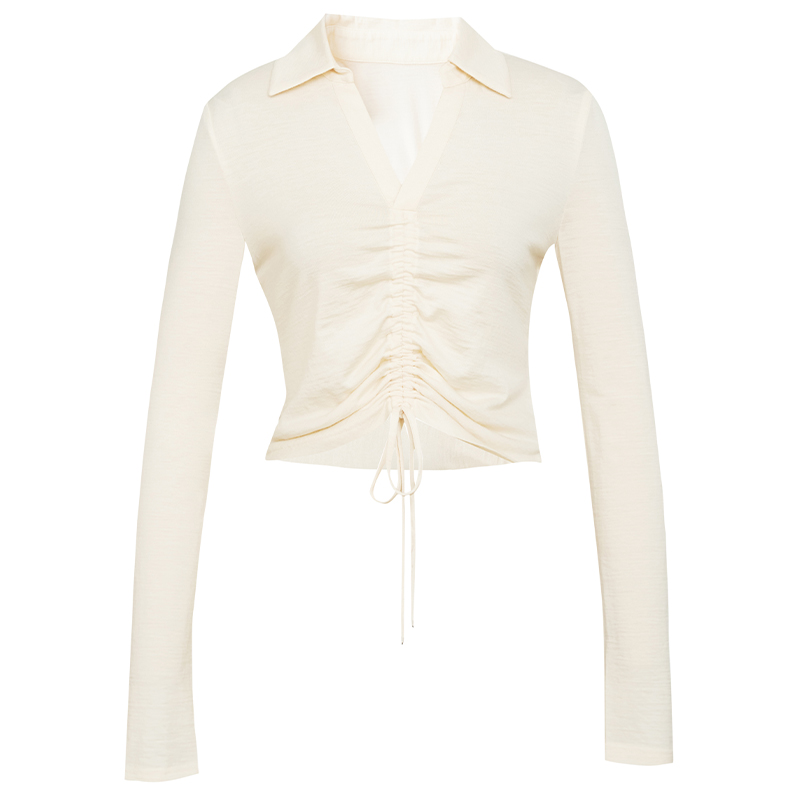 哥弟 V领子抽绳褶皱设计长袖衫1300833