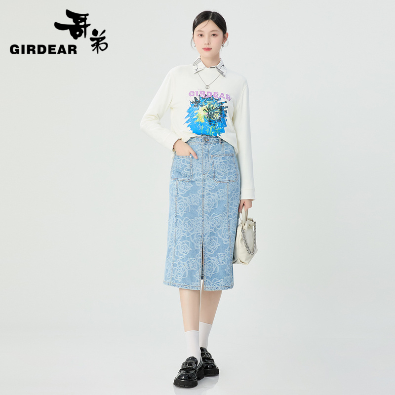 哥弟 休闲宽松圆领长袖印花卫衣T恤1300707