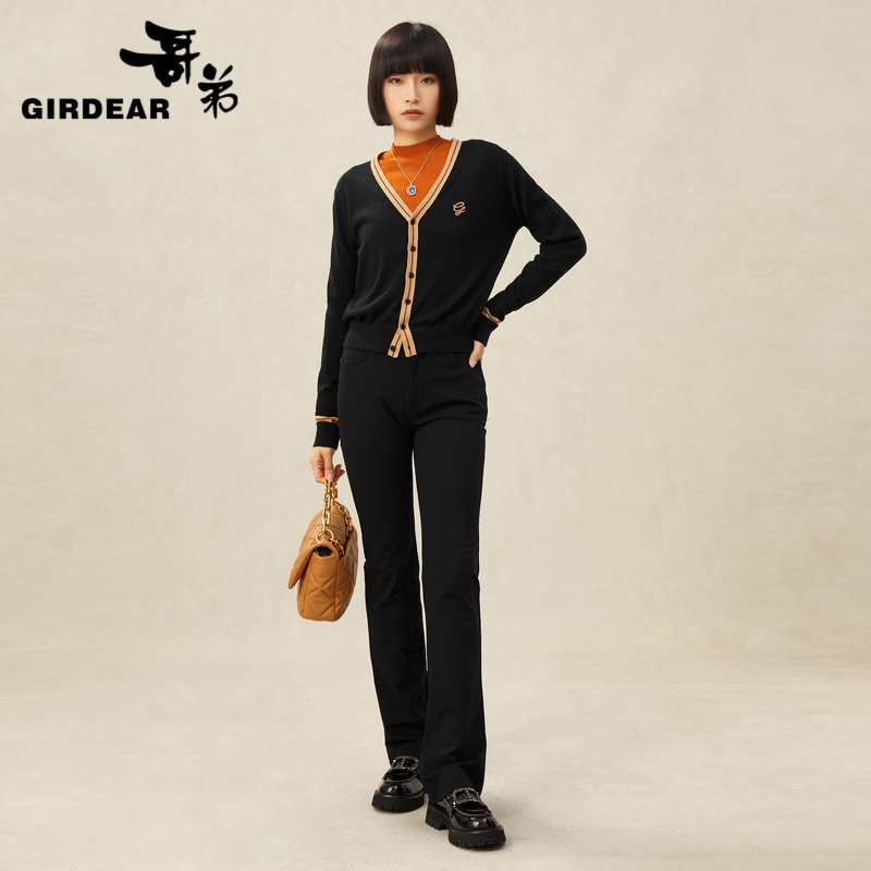 哥弟 V领撞色羊毛针织开衫1499175
