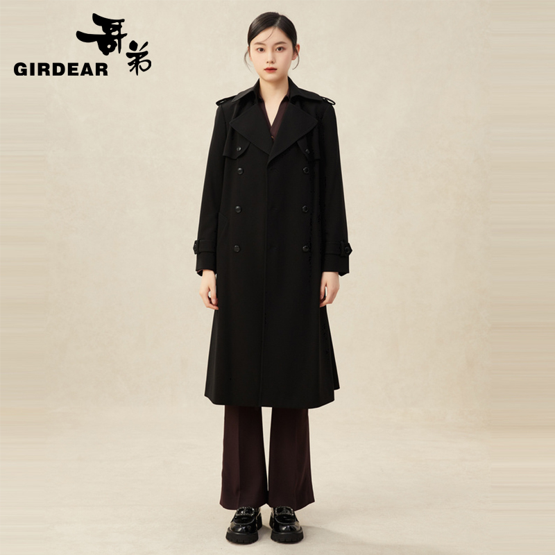 哥弟 超A质感金属双排扣长款风衣(附腰带)1400643