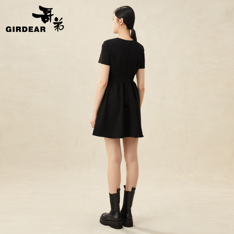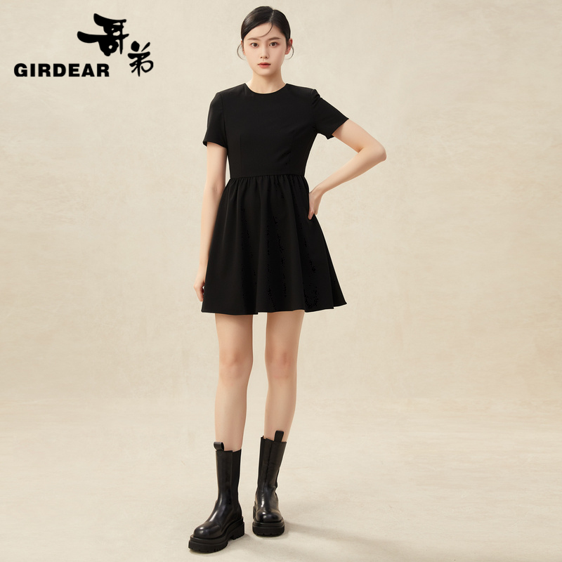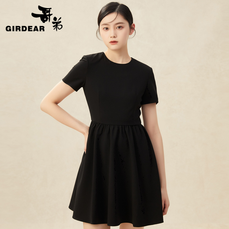 哥弟 简约气质圆领短袖小黑洋装1500435