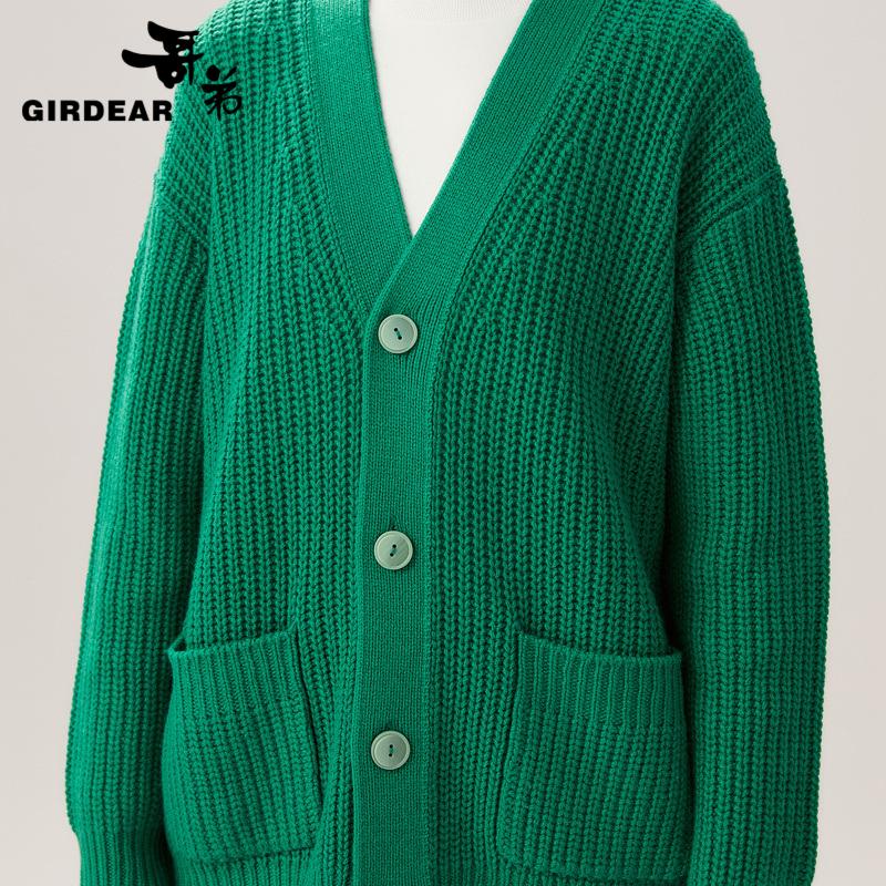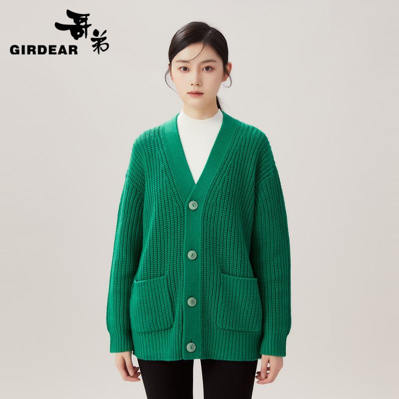 哥弟 V领质感粗棒针织奶奶开衫1499168