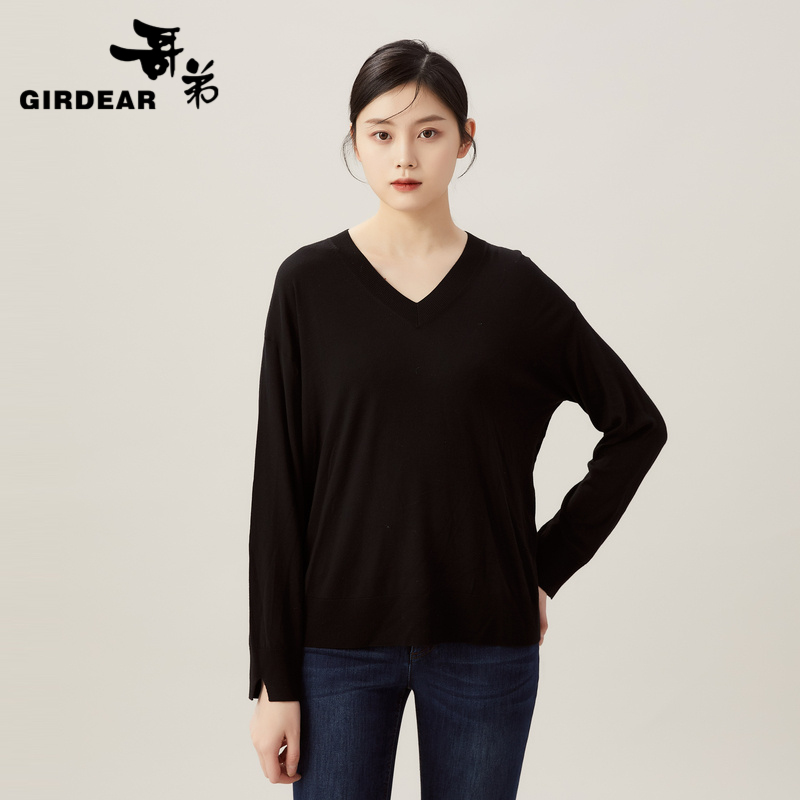 哥弟 桃心领纯色长袖套头针织衫1399559