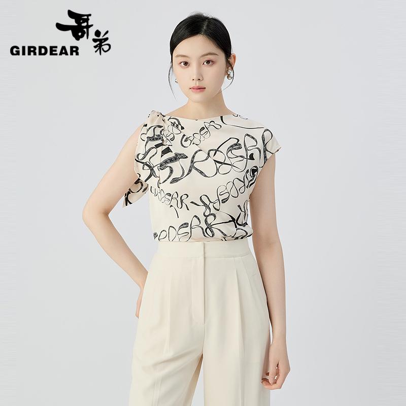 哥弟 气质正肩圆领短袖套头针织衫1399645