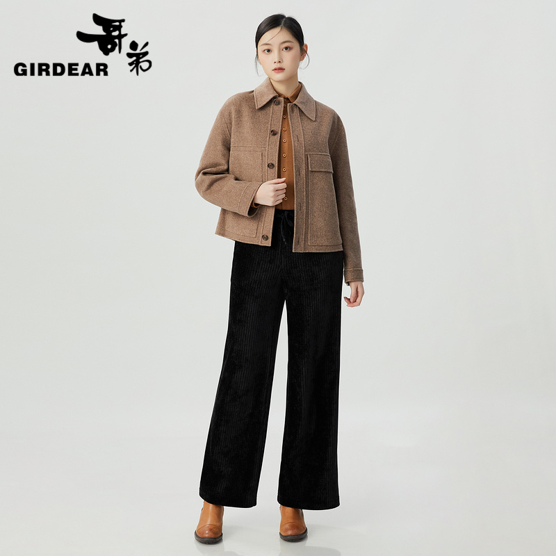 哥弟 翻领大口袋设计夹克双面尼外套1400703