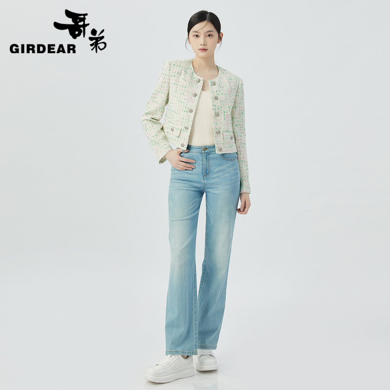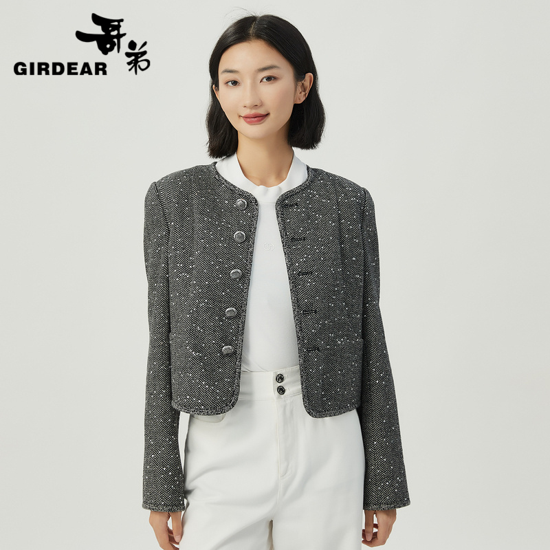 哥弟 质感 简约肌理感圆领短款小香外套1400680