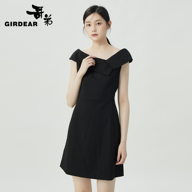 哥弟 轻奢收腰无袖一字肩连衣裙1500376