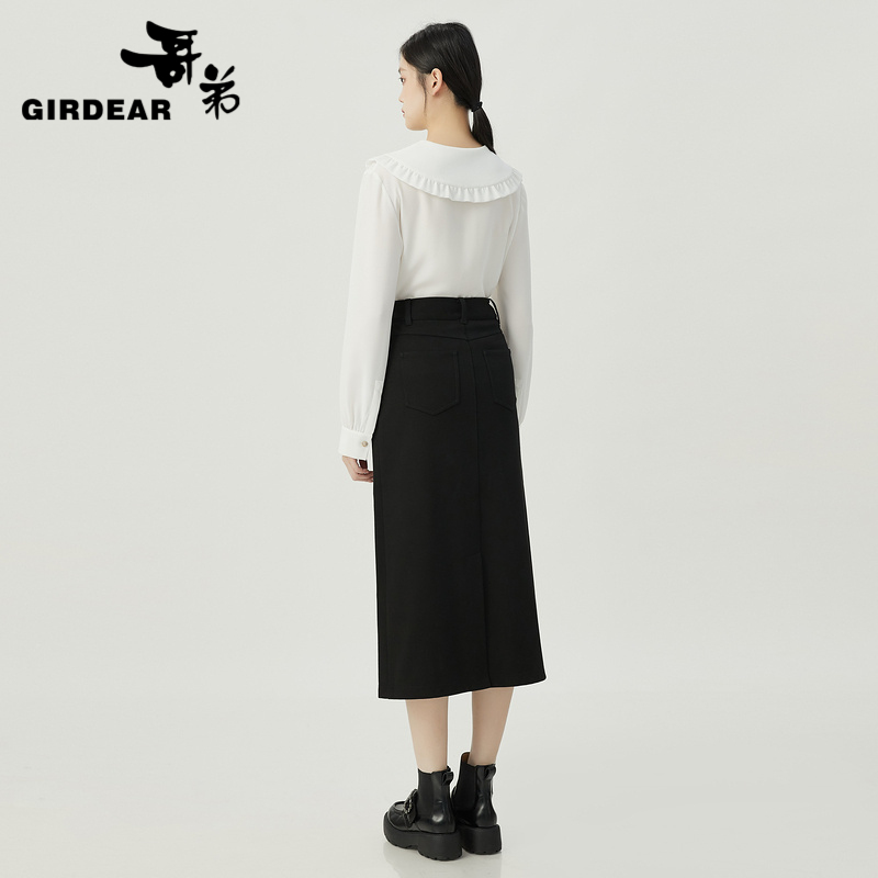 哥弟 高腰磨毛保暖绒双口袋设计长裙1200369