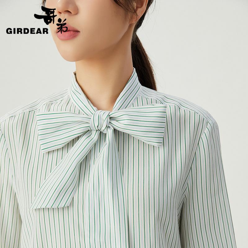 哥弟 经典翻领飘带亲肤桑蚕丝衬衫1300956