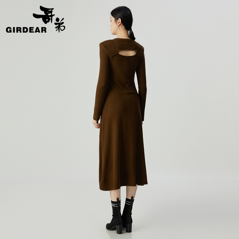 哥弟 简约圆领磨毛保暖长袖连衣裙1500505