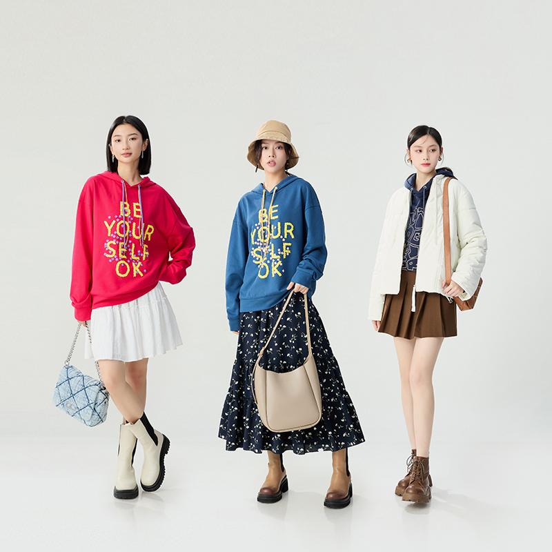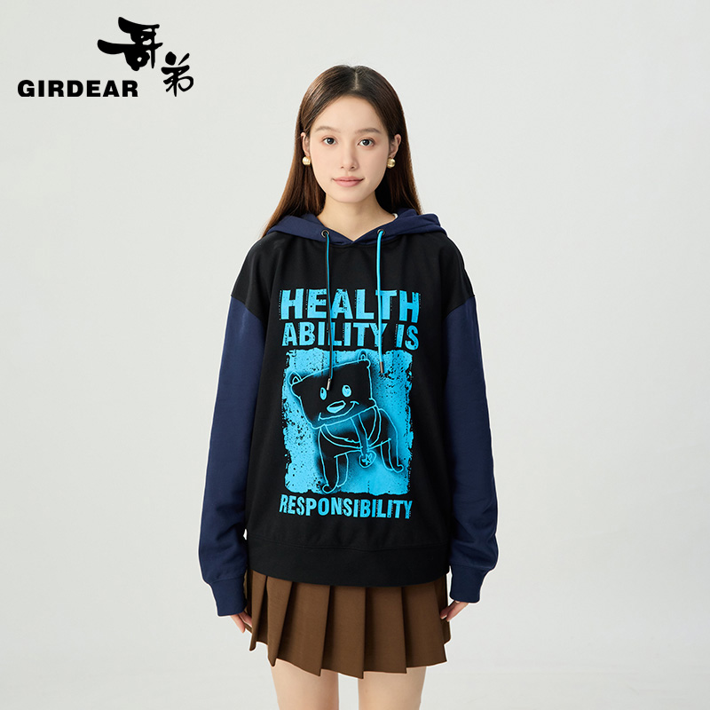 哥弟 减龄活力百搭宽松连帽卫衣1300781