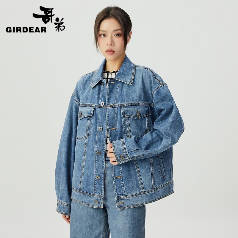 哥弟 复古廓形男友牛仔夹克外套1400737
