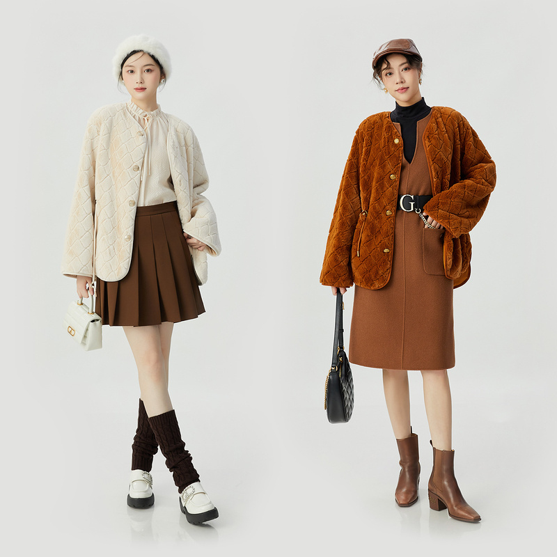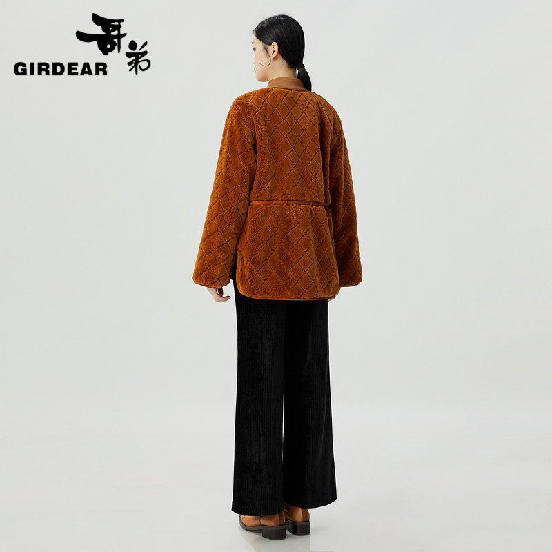 哥弟 热力感环保皮草绗缝菱格毛外套1400648