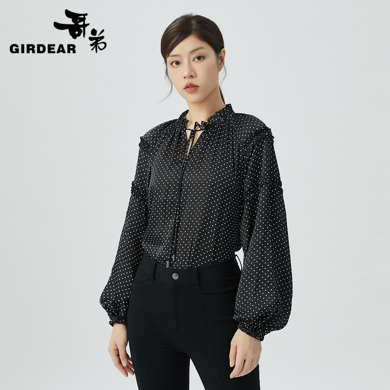 哥弟 法式复古木耳领灯笼袖衬衣1300940