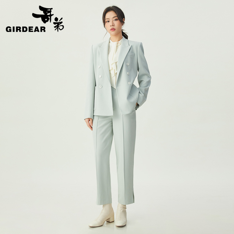 哥弟 简约气场通勤双排扣翻领西装外套1400745