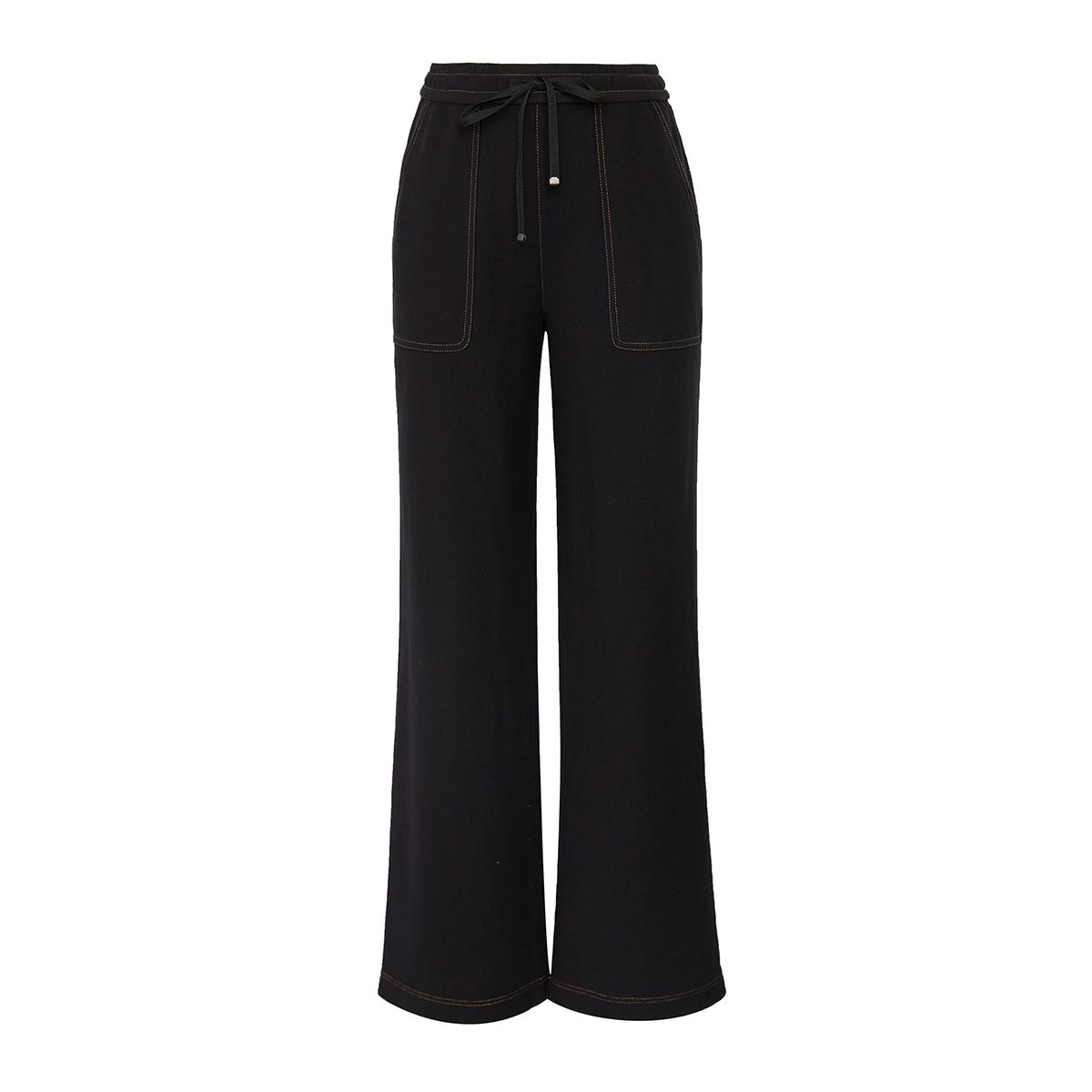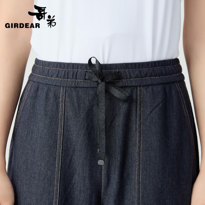 哥弟 明线设计弹性牛仔布直筒阔腿裤1100492