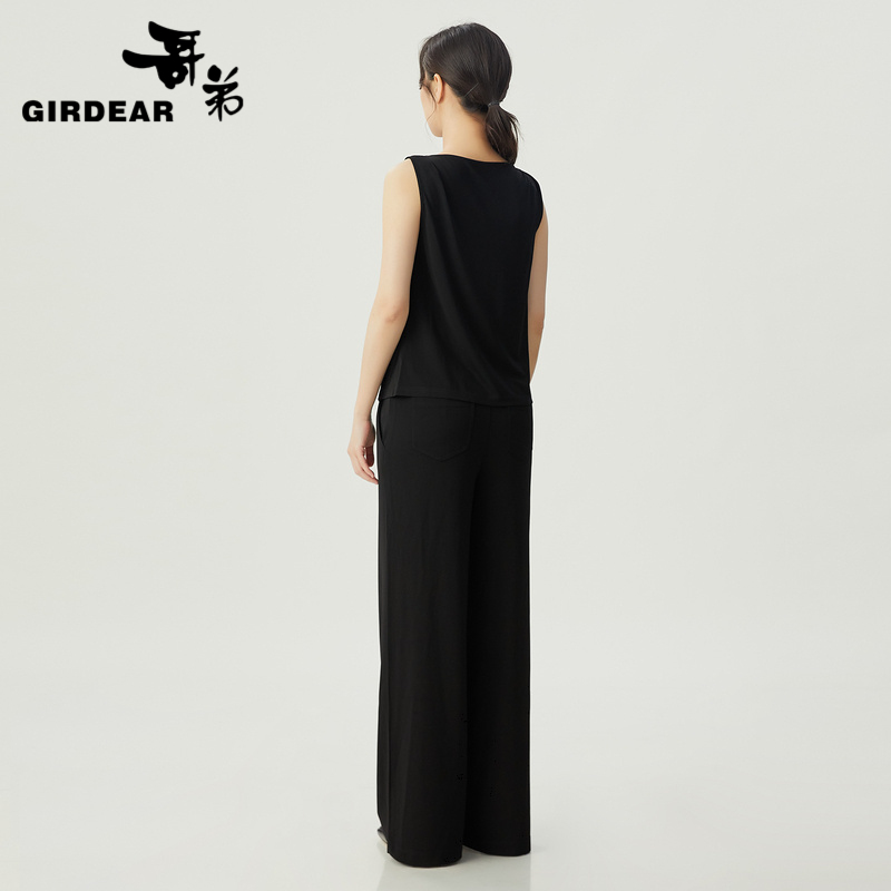 哥弟 丝滑不对称肩带气质无袖背心1301013