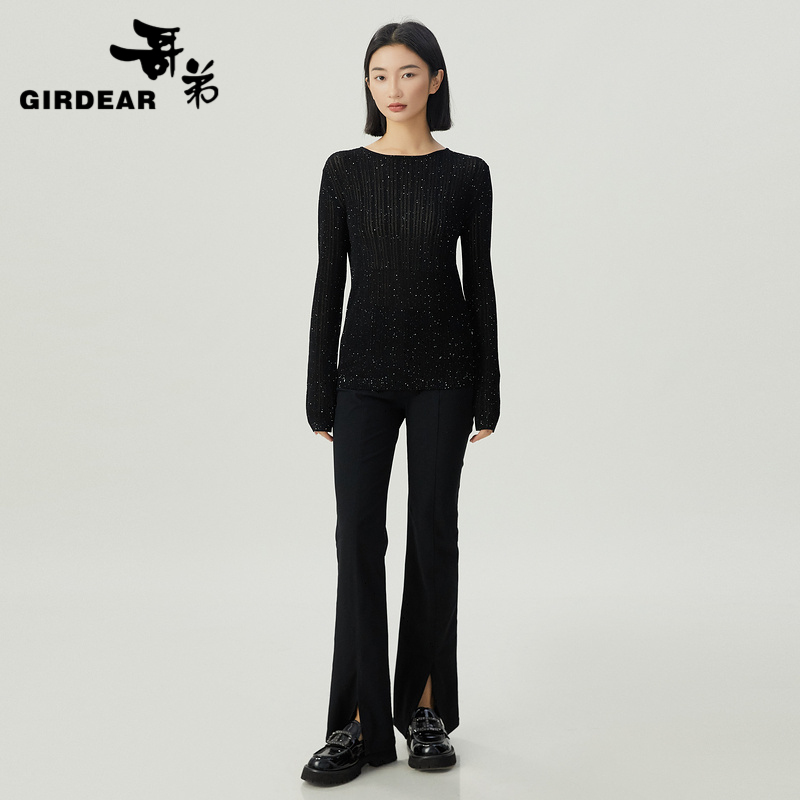 哥弟 宽松圆领亮片细闪套头针织1399708
