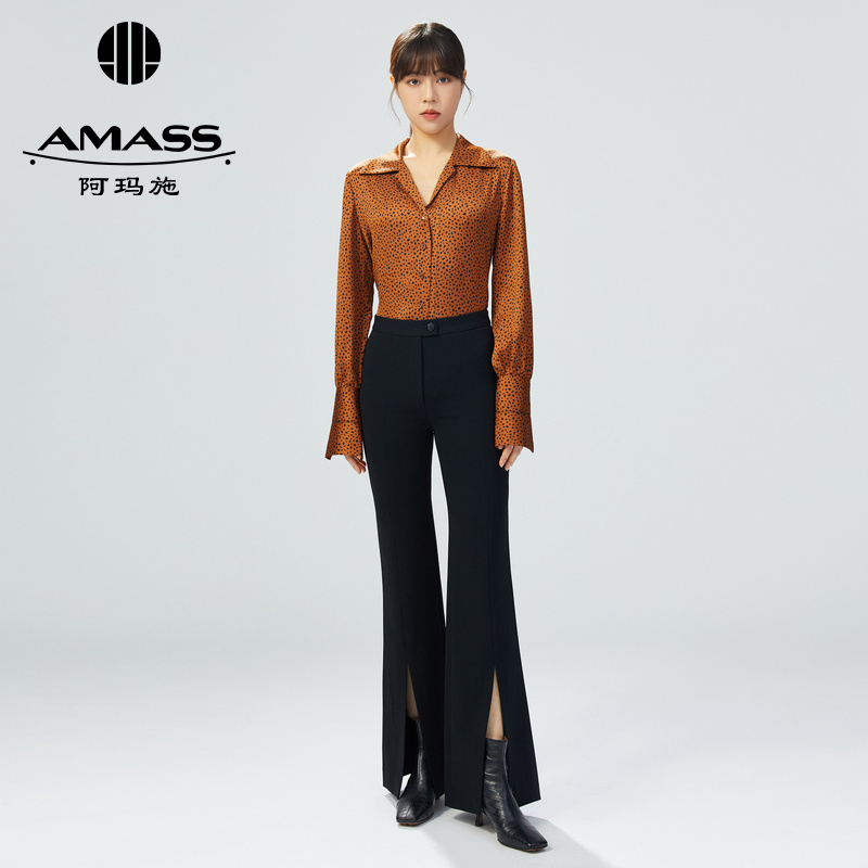 AMASS阿玛施 新款复古印花翻领长袖衬衫5300523-1