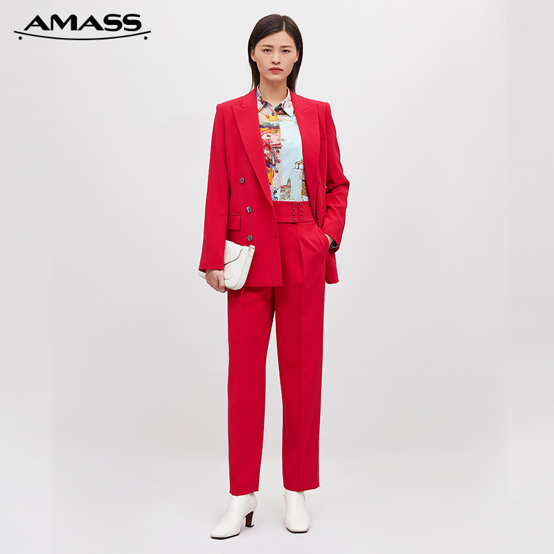 AMASS阿玛施 高腰宽腰头通勤烟管裤5100280