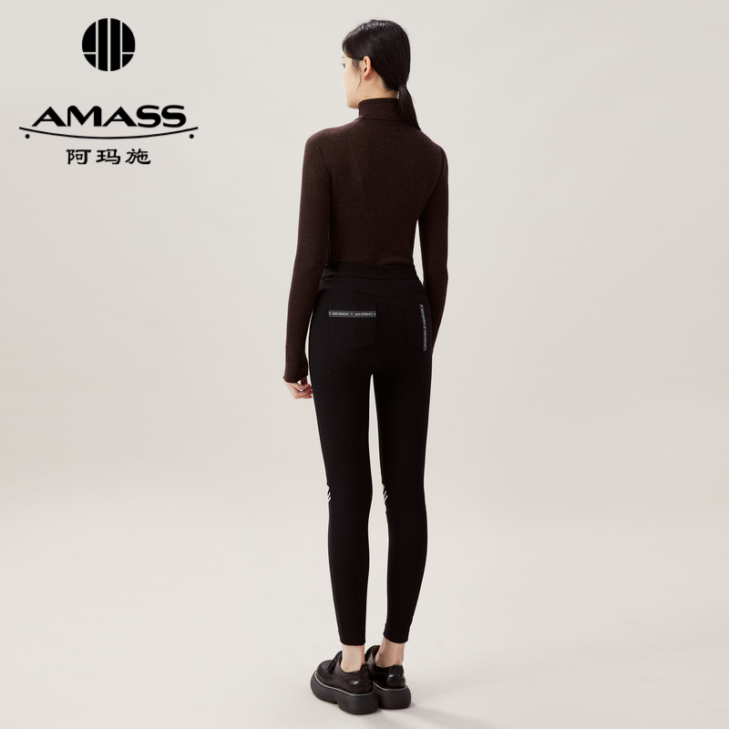 AMASS阿玛施 简约破洞瘦身小黑裤5100296