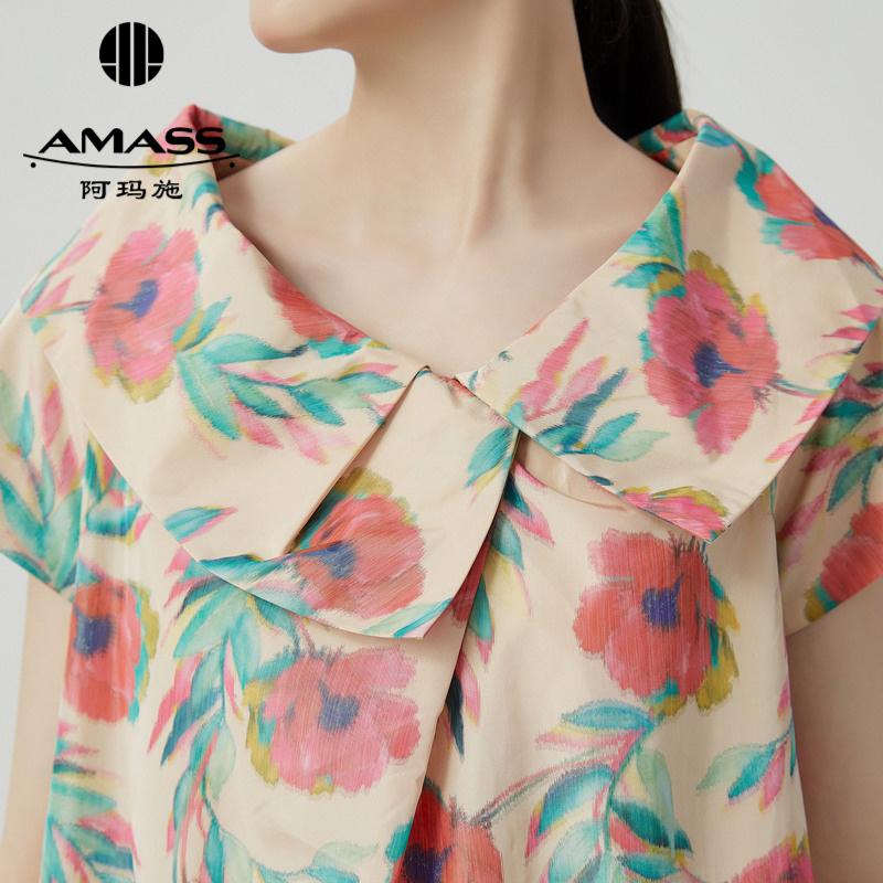 阿玛施AMASS 优雅气质冰河蓝复古印花洋装5500521