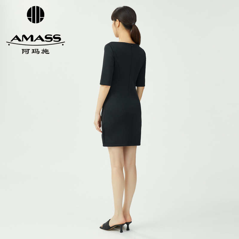 AMASS阿玛施 优雅圆领中袖连衣裙 5500452