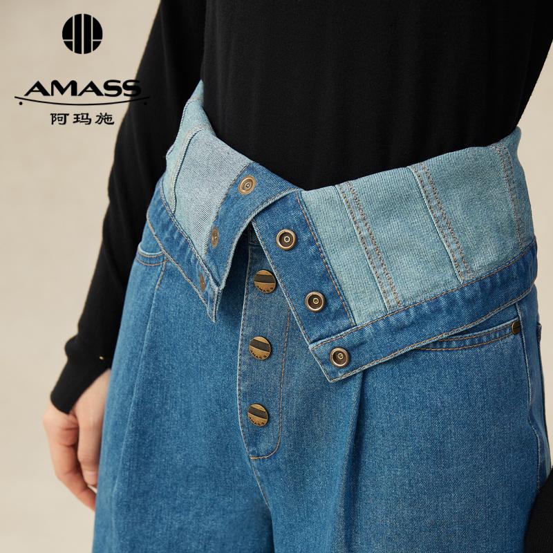 AMASS阿玛施 新款高腰造型宽腿牛仔裤5100416