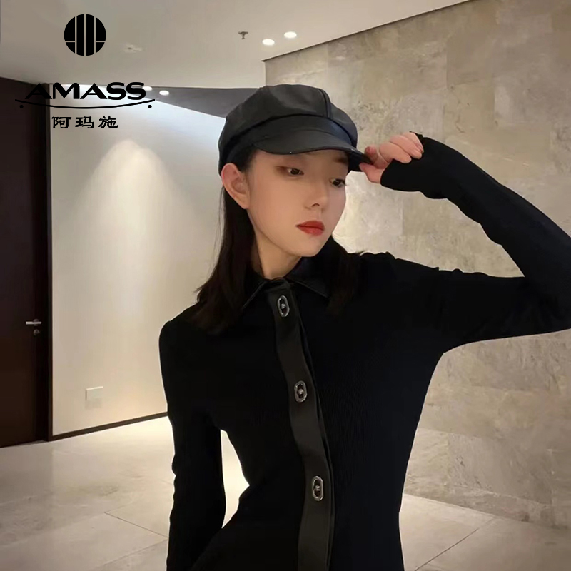 AMASS阿玛施翻领拼接排扣收腰连衣裙5500498