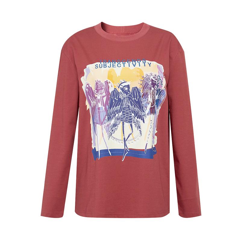 阿玛施AMASS 休闲质感印花刺绣圆领宽松长袖卫衣5300890