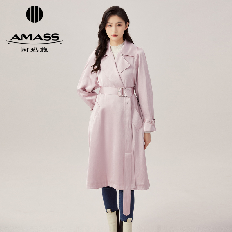 AMASS阿玛施翻领宽松长袖长款风衣女附腰带5400848-2