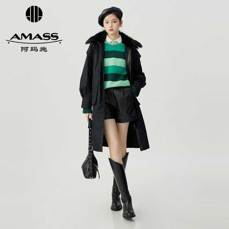 AMASS阿玛施 休闲长款毛领派克厚外套5400734