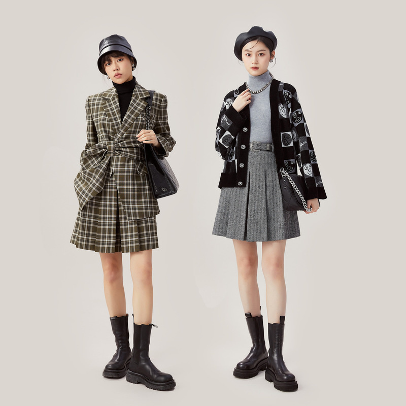 AMASS阿玛施 高级感灰色短款百褶裤裙5100412