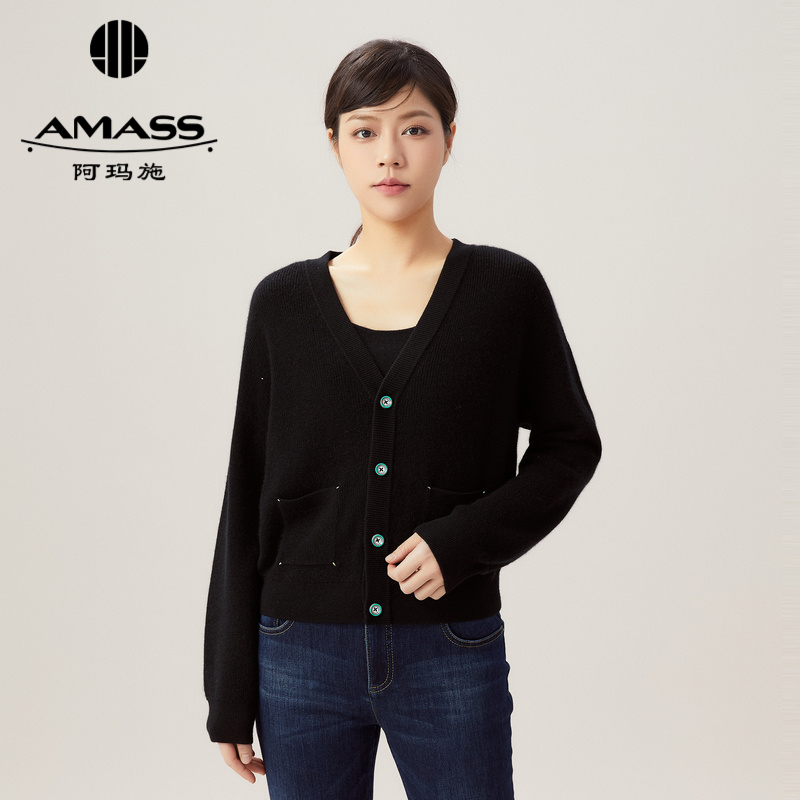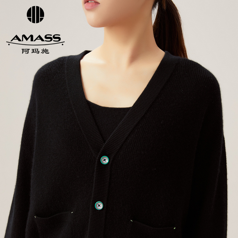 AMASS阿玛施 时尚先生V领山羊绒针织开衫5499164