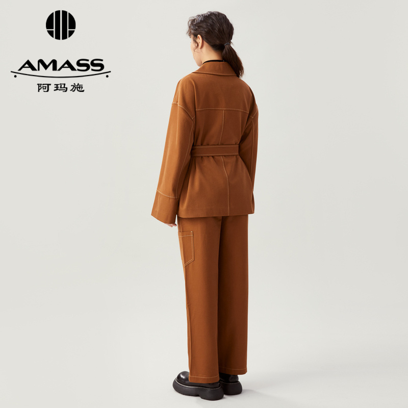 AMASS阿玛施 中长款V领明线设计工装外套5400756 附腰带