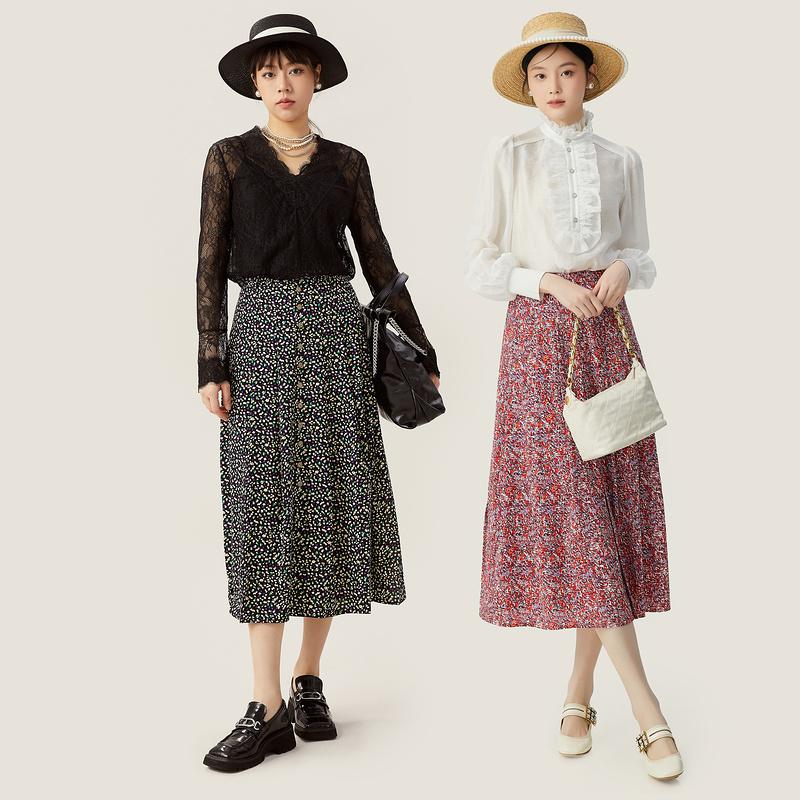 阿玛施AMASS 高腰排扣浪漫碎花长裙5200436