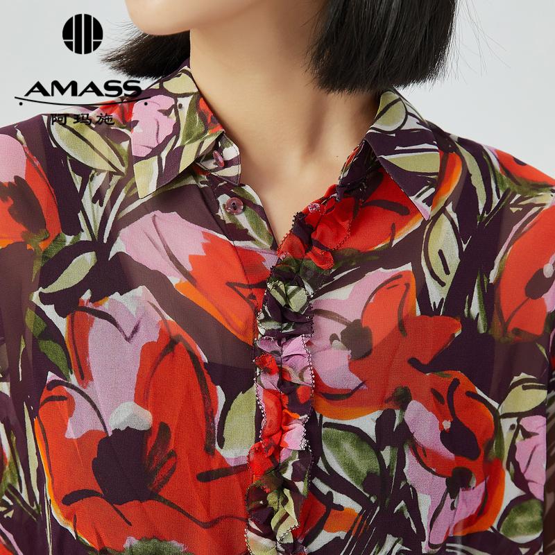 阿玛施AMASS 复古蕾丝微透长袖绑带衬衫5300285