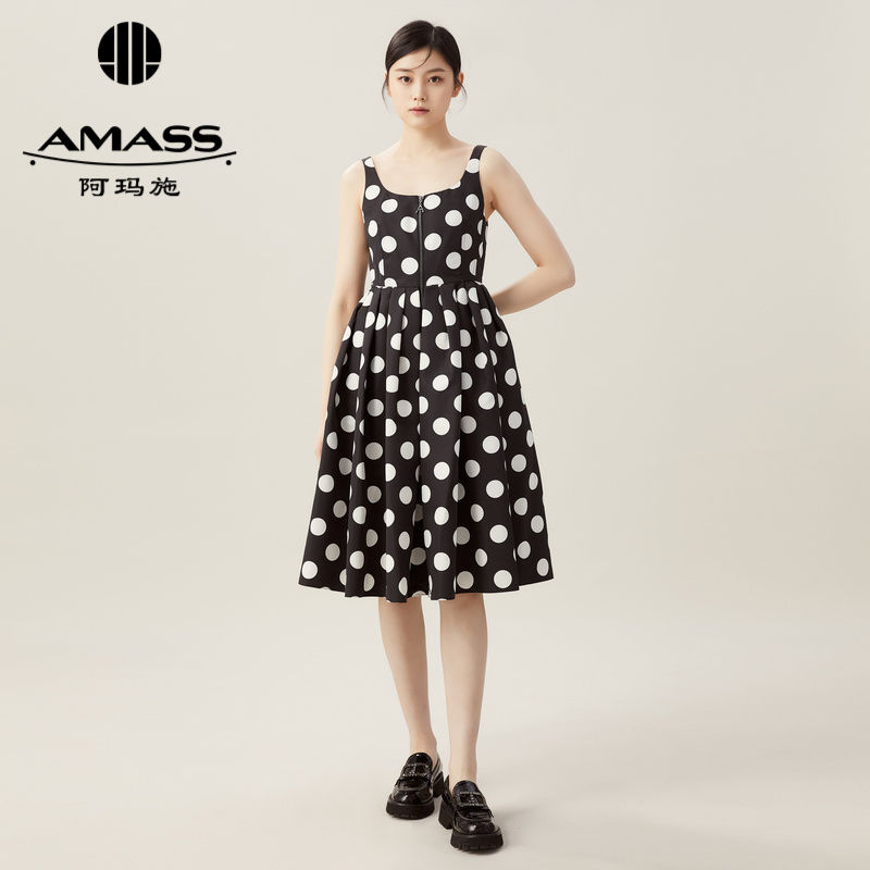 阿玛施AMASS 拉链式复古波点无袖赫本连衣裙5500446