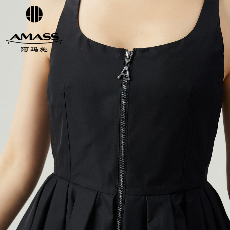 阿玛施AMASS 拉链式简约复古无袖连衣裙5500446-2