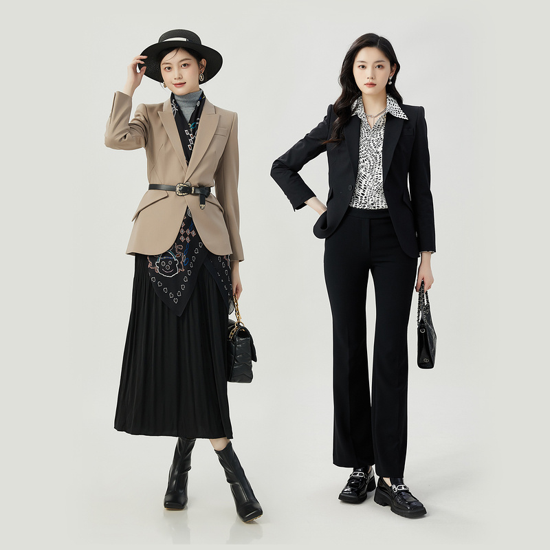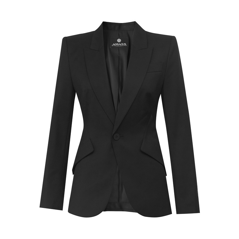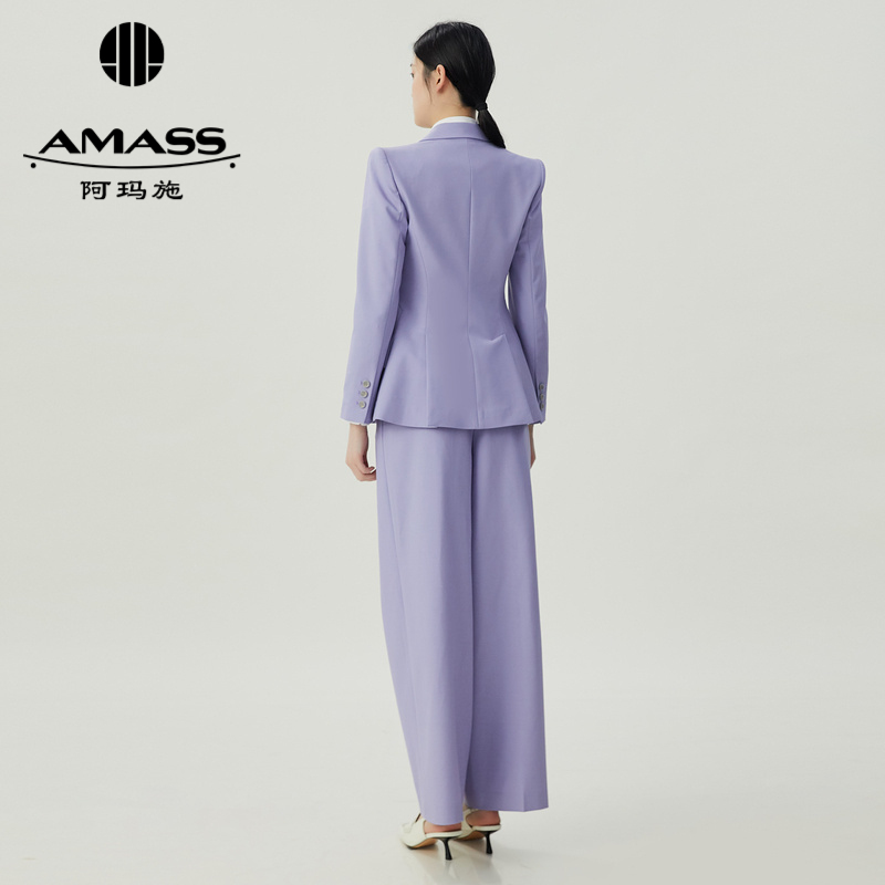 阿玛施AMASS简约纯色宫廷翻领单扣通勤西装女5400809-2