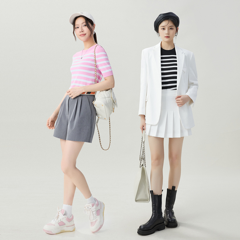 阿玛施AMASS 经典不过时黑白纹圆领针织短袖T5399611